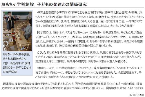 おもちゃ学の集中講義の様子が神戸新聞に掲載されました.